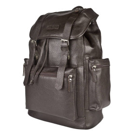 Кожаный рюкзак Voltaggio (Вольтаджио) выполнен из натуральной кожи темно-коричневого цвета. Рюкзак сочетает в себе вместительность торбы и практичность делового рюкзака для ноутбука. Состоит из объемного отделения под клапаном на кожаном шнурке и уплотненного отделения на молнии со стороны спинки. Клапан закрывается портфельными цупферными замкам..